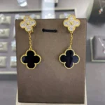 [Van Cleef Arpels]CLOVER 2 MOTIF TIGER EYE CARNELIAN EARRINGS